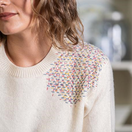 Donnez un twist à votre-robeLa broderie, c'est une excellente façon de s'exprimer en personnalisant ses vêtements. Il existe une grande variété de styles et de points de broderie, mais les débutants peuvent créer de très belles pièces avec quelques points simples ! Choisissez un pull, une chemise ou une écharpe dans votre garde-robe et donnez lui un twist sympa en brodant un motif de votre choix, avec vos couleurs préférées... Nous venons de rentrer la gamme Eco Vita 360, le nouveau fil à broder DMC en laine 100% biologique qui tire sa riche palette de couleurs de teintures naturelles tels que le noyer, la rhubarbe, l'indigo et le genévrier. Cela lui donne un aspect légèrement chiné qui ajoute une touche subtile et authentique aux créations. C'est un fil doux qui donne aux points du relief et un aspect tridimensionnel. Raccomodage visible ou embellissement sur laineNous avons testé et approuvé ces techniques pour donner une nouvelle vie à vos vêtements un peu usés !Réparez les déchirures et les trous en les mettant en valeur de manière créative et esthétique. Contrairement aux méthodes traditionnelles de raccommodage qui cherchent à cacher les réparations, le raccommodage visible utilise des fils colorés, des broderies et des patchs pour transformer les zones endommagées en oeuvres d'art. Prolongez la vie de vos vêtements et racontez leur histoire plutôt que de masquer leurs imperfections. Alors, sortez vos aiguilles et fils colorés et transformez vos vêtements abîmés en pièces uniques et stylées ! Les petits plus- Il est certifié Woolmark et est donc respectueux du bien-être animal. - Il est très résistant et peut être lavé à la main à 30 degrés avec une lessive douce.
