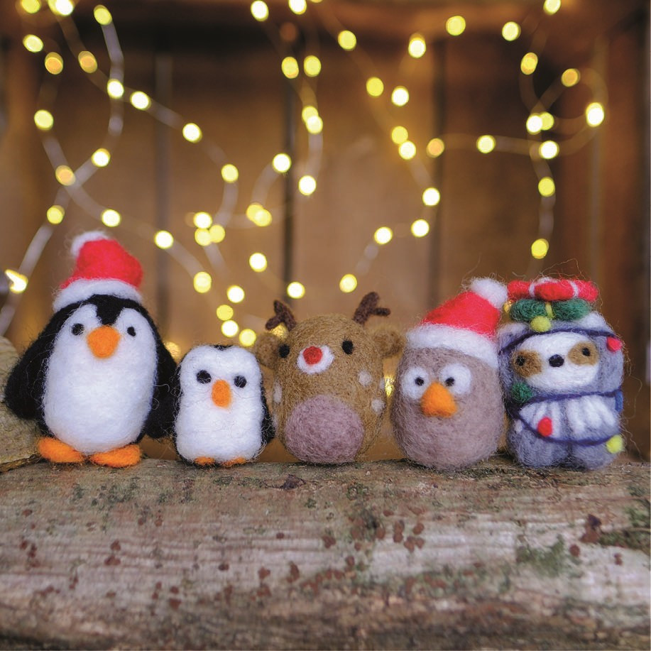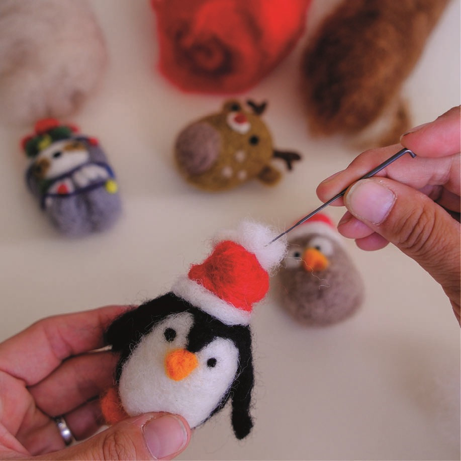 Découvrez une technique passionnante et facile à la fois pour façonner de petits compagnons uniques Imaginez une poignée de laine brute qui, sous vos doigts, se transforme peu à peu en un petit personnage unique. C’est toute la magie du feutrage à sec ! Une activité créative qui permet de réaliser aussi bien des figurines pour décorer la table que des suspensions originales pour le sapin ou des petits grigris à accrocher aux portes. Set d'outils de feutrage En piquant longtemps, on peut facilement se laisser distraire… et viser son doigt plutôt que la laine. Les protège-doigts sont là pour éviter ce genre de petits accidents. Gagnez du temps avec le porte-aiguilles : il permet de piquer plusieurs fois en même temps et d’aller jusqu’à trois fois plus vite. Ornements mignons Piquez un fil sur le haut de votre personnage pour le transformer en une suspension.